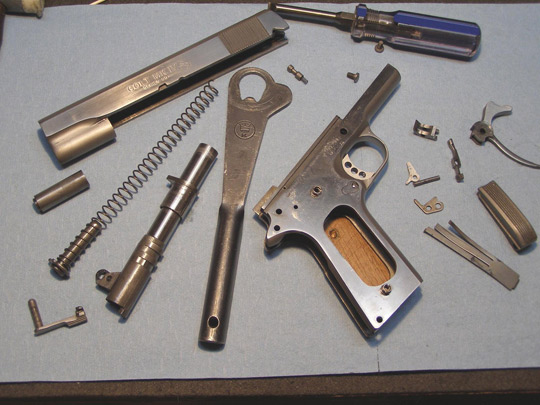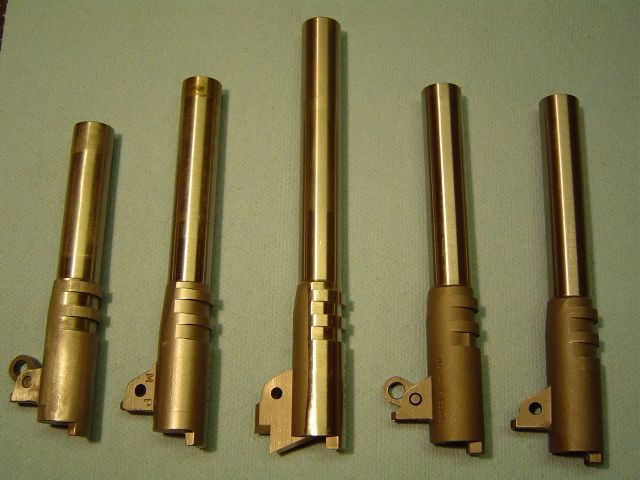 At Angus Arms, we have 30 years of experience repairing and rebuilding 1911 type pistols. A common customer complaint, especially with older guns, is poor accuracy. The 1911 was designed primarily as a fighting gun but is readily converted to an accurate target pistol that will outperform other semi-automatic handguns. Most 1911s are produced with drop-in parts and tolerances are generous to eliminate the need for hand fitting. 90% of mechanical accuracy (assuming good ammunition) is barrel fit to the slide stop, locking lugs and barrel bushing. Consistent lockup is key to small groups and handfitting an oversized match barrel and bushing is the biggest single accuracy enhancement available. Improving slide to frame fit should be included as part of barrel fitting but will not yield a significant improvement in accuracy as a stand alone modification. A basic accurizing package will include fitting a match grade barrel and bushing, tightening the slide as needed and test firing.